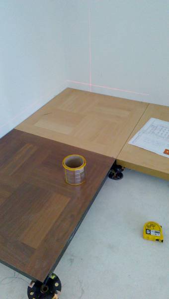 В пятницу пригласили на объект,на Буревесник, посмотреть пол , на котором работали не мы, а кто то другой. Пол смонтирован на площади 600 м2, но уложен с нарушениями. При не сложных манипуляциях с лазером и правилом сразу видны перепады горизонта фальшпола. Такой фальшпол принять нельзя. Единственное решение перекладывать. Для Заказчика это и доп. затраты и время. Самое печальное, что стойки уже зафиксированы фиксатором.